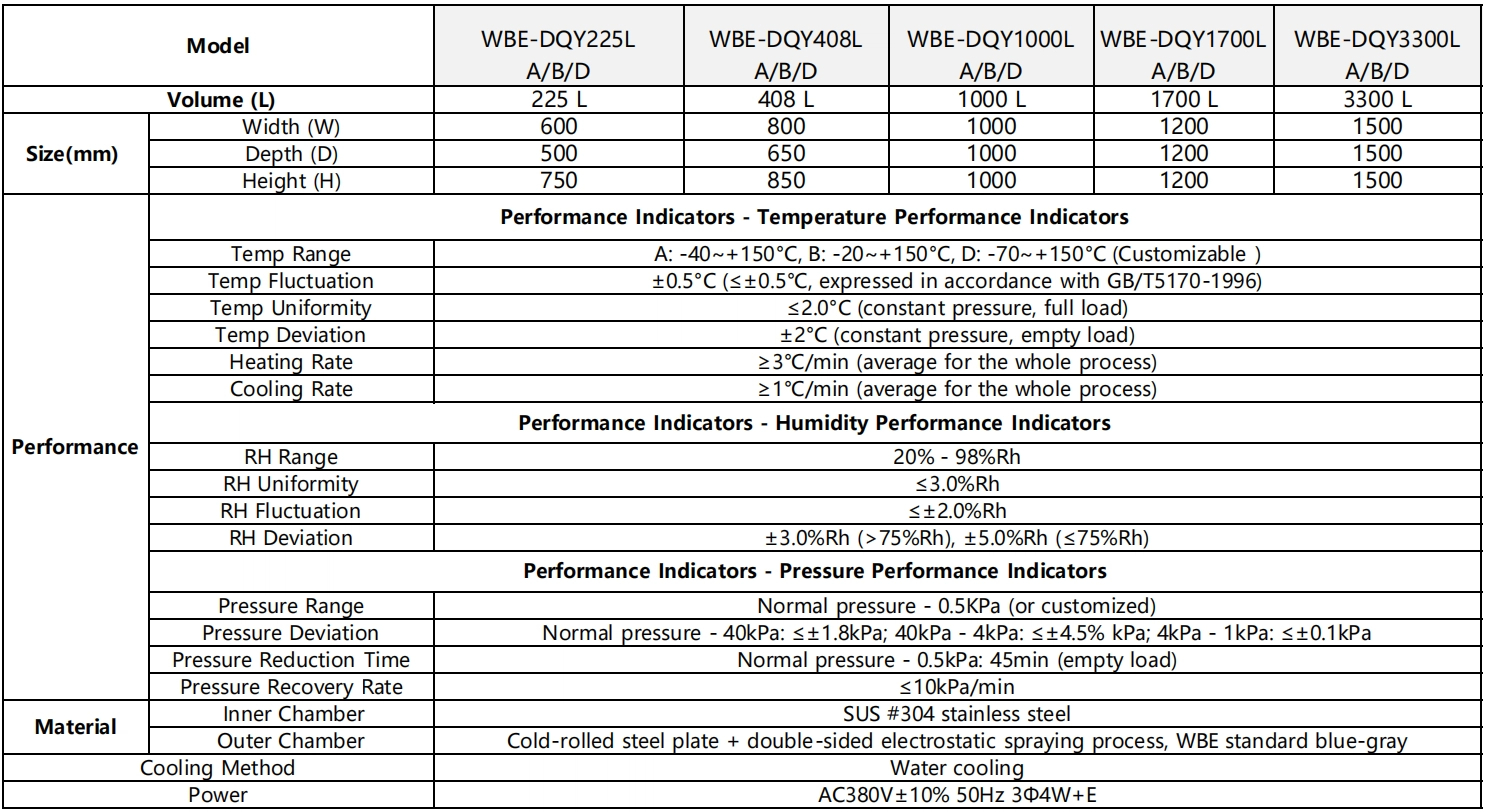 This high-altitude, low-pressure test chamber is used to determine the adaptability and reliability of components, materials, instruments, equipment, or other products in environments such as high altitude, low oxygen, extreme cold, and plateaus. It can also be used for high-low temperature/constant temperature and humidity-heat testing, testing the performance of various materials under extreme conditions of heat, cold, dryness, and humidity.